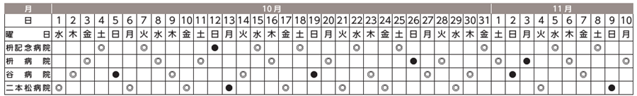 ◎夜間(18時~翌日8時) ●休日+夜間(8時~翌日8時)