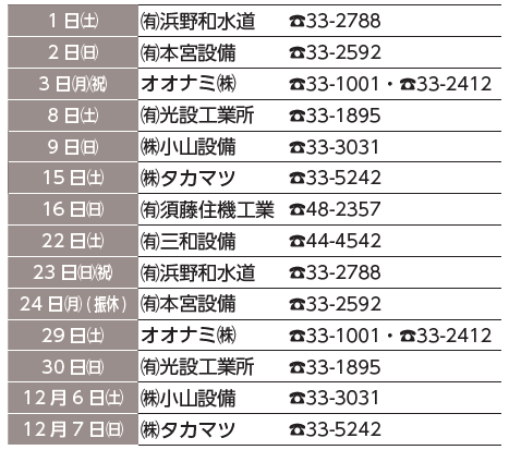 ※宅内の漏水で、早急に修理の必要がある場合のみ。その他の水道修理や工事は、登録店へ依頼してください。登録店一覧は、本紙右記QRをご確認ください。市では、特定の業者の紹介はしていません。