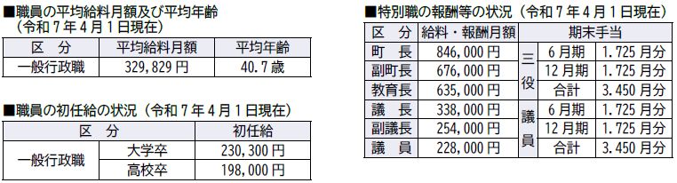 町職員の給与は、民間企業、国や他の地方公共団体の給与などを考慮したうえで、町議会の審議を経て条例で定められています。