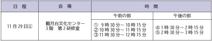 完全予約制となりますので、電話で申込みください。(各回1名ずつ先着順)