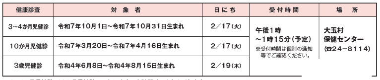 ※3~4か月児健診、10か月児健診の日程は赤ちゃん訪問時にお知らせします。