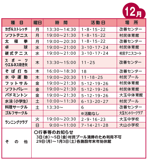■大玉スポーツクラブ予定表