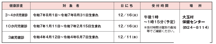 ※3~4か月児健診、10か月児健診の日程は赤ちゃん訪問時にお知らせします。