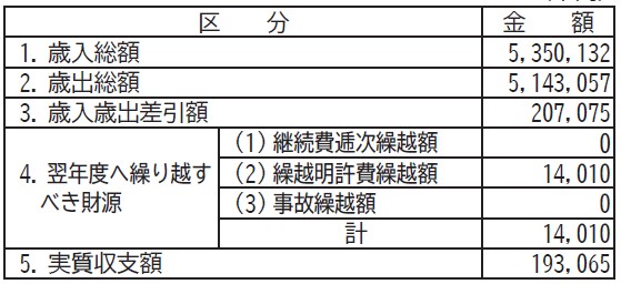 歳入歳出差引額は、2億707万5千円で、繰越事業の財源となる1,401万円を除いた純繰越金1億9,306万5千円は令和7年度へ繰り越します。対前年度で比較すると歳入が6.6%の増、歳出が6.2%の増となりました。