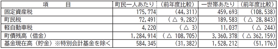 令和6年度分の一般会計決算を町民一人あたり、また、一世帯あたりでみると次のようになります。