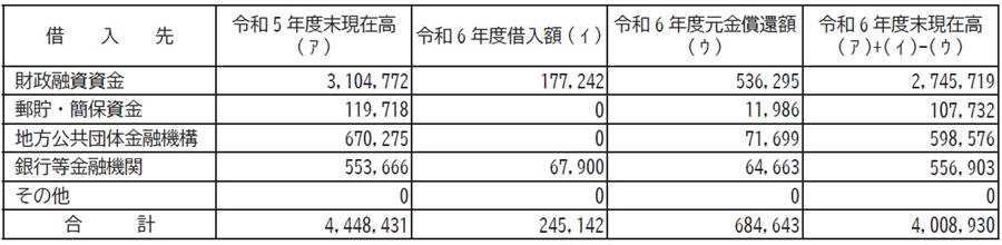 ◇令和6年度末一般会計町債借入先現在高調書(千円)