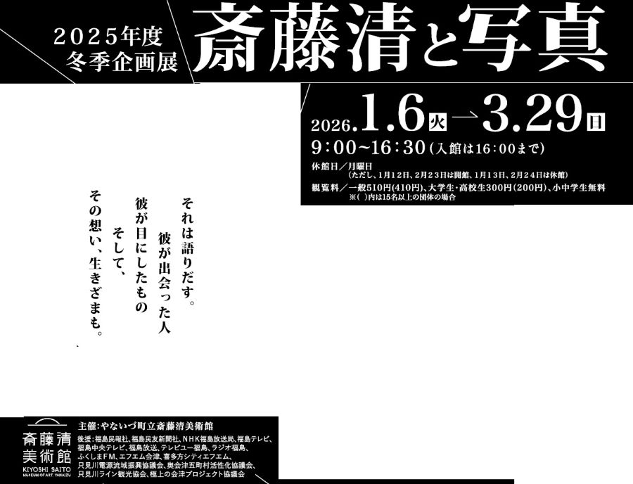 イベント 斎藤清美術館 13/14 前の記事 次の記事 発行日 : 2025年12月26日 自治体名 : 福島県柳津町 広報紙名 : 広報やないづ 2026年1月号 Tweet シェアする 1月行事予定カレンダー その他のお知らせ(広報やないづ 2026年1月号)