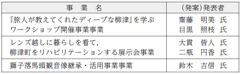 今年の春から3つの事業がスタートし、調査や取材、イベントなどにおいて、発案者自ら町内各所で熱心に事業に取り組んで参りました。下記により、これまでの取り組みや成果を発表する中間成果報告会を開催しますので、ぜひご参加ください。