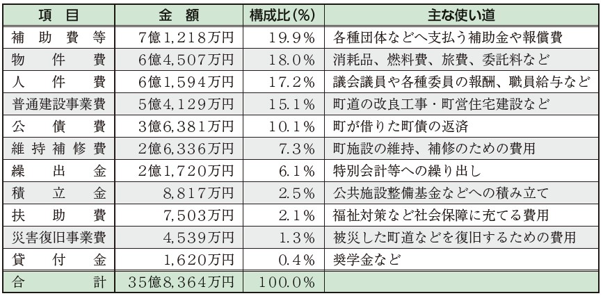 公債費:国や金融機関からの借入金(町債)の返済