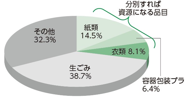 検査結果から、資源物の分別と生ごみの減量(食品ロス削減)が、燃やせるごみ減量に最も効果的であることが分かります。