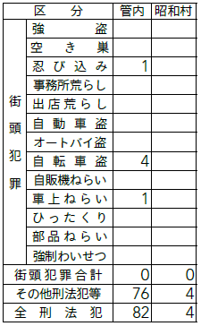 ▽昭和村内街頭犯罪等発生状況(令和7年10月末現在)