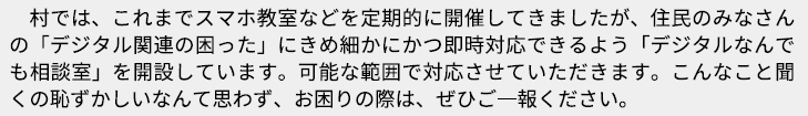 くらし デジタルなんでも相談室 16/22 前の記事 次の記事 発行日 : 2025年09月03日 自治体名 : 福島県昭和村 広報紙名 : 広報しょうわ 令和7年9月号 デジタル全般に関するお問い合わせ:総務課 企画創生係 【電話】0241-42-7717 Tweet シェアする Wi-Fi(ワイファイ)のむら #23 災害時の公共インフラWi-Fi 皆さんは「いざ」という時の備えをしていますか?