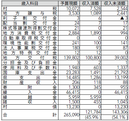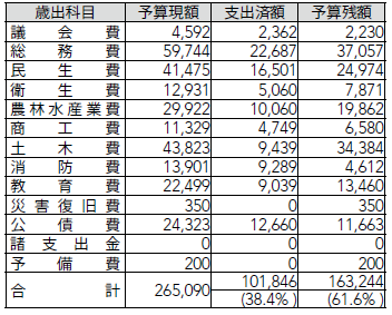条例に基づき、上半期の財政状況のあらましをお知らせします (単位:万円)
