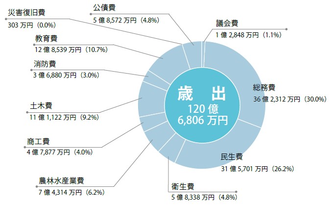 村民1人当たりに換算すると58.4万円でした。(人口20,616人 ※令和7年1月1日現在)
