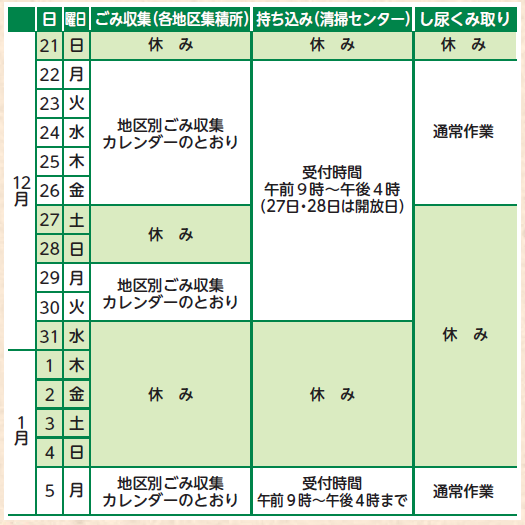 年末は12月26日(金)まで、新年は1月5日(月)から行います。