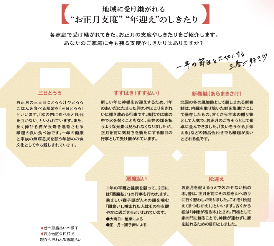 くらし 【特集】今年もあとわずか。三春の風習と年末の準備。(3) 11/40 前の記事 次の記事 発行日 : 2025年12月01日 自治体名 : 福島県三春町 広報紙名 : 広報みはる 令和7年12月号 ※詳細は、本紙P.13をご覧ください。 Tweet シェアする 【特集】今年もあとわずか。三春の風習と年末の準備。(2) 町で一緒に働きませんか?令和8年度会計年度任用職員を募集します