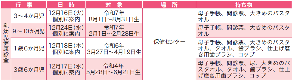 ■乳幼児健康診査日程