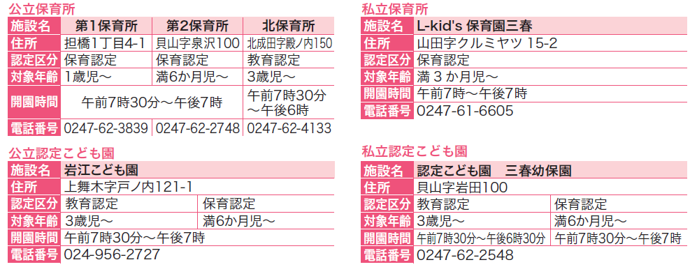 ▽町外施設への入園については、三春町への申込みが必要な場合もありますのでお問合せください。