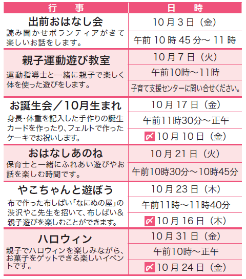 期限:10月16日(木)までに、アプリ「母子モ」または電話でお申込みください。