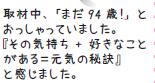 ■〈元気な高齢者を紹介します〉熊田ヨシ子さん(94歳)元気のヒケツ!