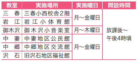 ※中妻・中郷・沢石教室では延長および長期休業中教室を実施しています。