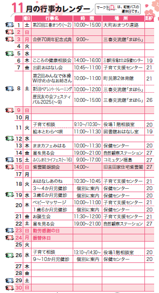 11月5・20日(午前)・27日(午後)、土・日曜日、祝日