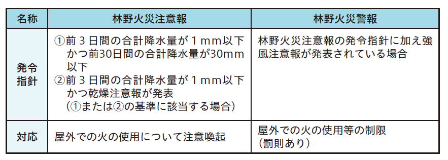 ■林野火災の予防を目的とした警報、注意報が創設されます