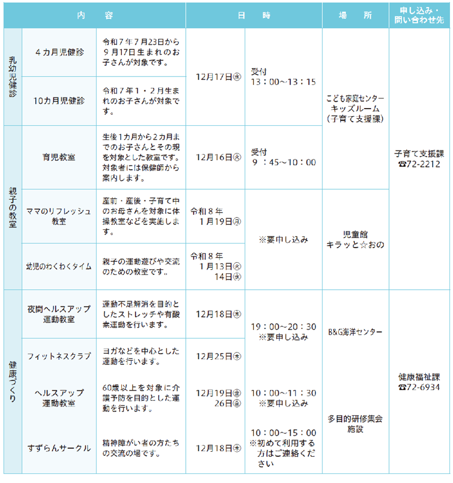 くらし 各種健診・教室などの日程 40/46 前の記事 次の記事 発行日 : 2025年12月10日 自治体名 : 福島県小野町 広報紙名 : 広報おのいろ 令和7年12月号 Tweet シェアする 当番医 食品などの放射能測定結果