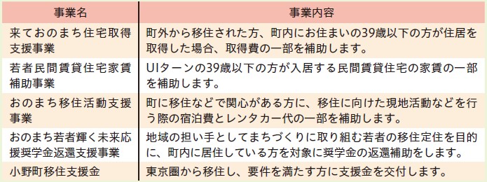 また移住相談は町民体育館内の「つどっておのまち」で随時行っていますのでご連絡ください。