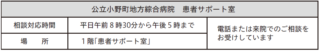 当院の「患者サポート室」では、医療・介護に関する相談を受け付けています。