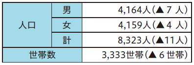 その他 町の人口・世帯数 29/31 前の記事 次の記事 発行日 : 2025年09月10日 自治体名 : 福島県小野町 広報紙名 : 広報おのまち 令和7年9月号 (令和7年8月1日現在) ※( )内は前月比 Tweet シェアする 上水道水質検査結果 町税等納期のご案内