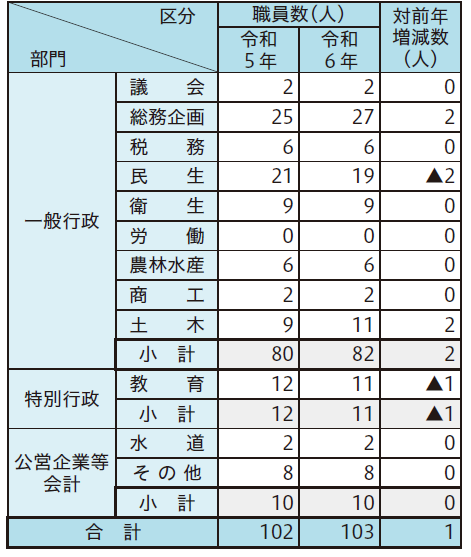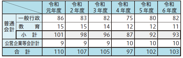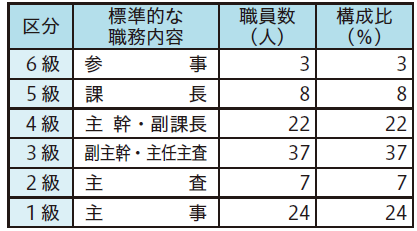 ※町の給与条例に基づく給与表(行政職)の級区分による職員数で、技能労務職を除く職員数です。