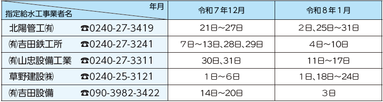 ■水道修理当番表