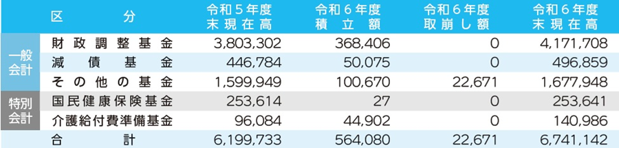 歳入歳出差引額は、5億842万7千円で、令和7年度へ繰り越した事業の財源1億889万3千円を差し引いた実質収支額が3億9,953万4千円となり、このうち2億円を財政調整基金に積み立て、残りを令和7年度に繰り越しました。