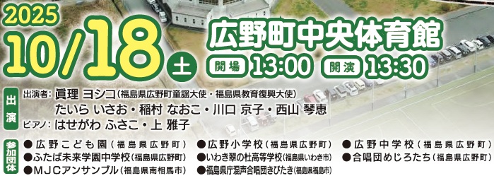 イベント 第28回ひろの童謡(うた)まつり[入場無料]~響けうたごえ みんなの空へ~ 24/26 前の記事 次の記事 発行日 : 2025年10月03日 自治体名 : 福島県広野町 広報紙名 : 広報ひろの 令和7年10月号 Tweet シェアする げんキッズのご案内 人口と世帯数(住民基本台帳人口による)