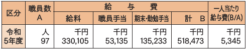 (注)職員数は、令和5年4月1日現在の人数であり、職員手当には退職手当を含みません。