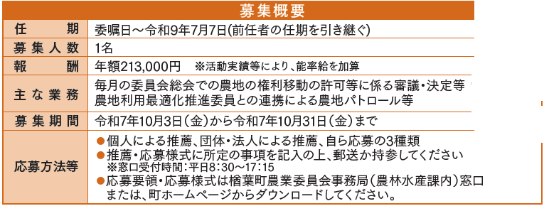 楢葉町農業委員会では、任期中の委員に欠員が生じたため、下記のとおり委員を募集します。