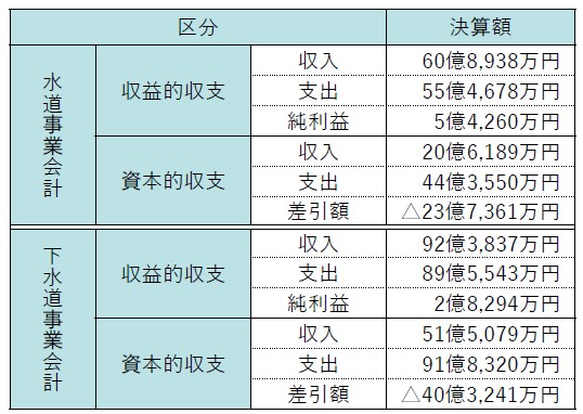 公営企業会計は、地方公営企業法の適用を受ける会計で、その年度の損益を明らかにするための収益的収支と、施設の整備拡充に充てる資本的収支に分かれています。