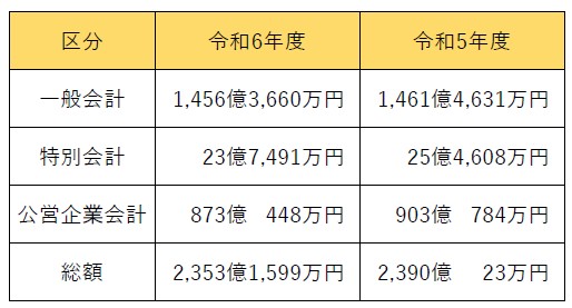 令和6年度末の市債残高は、総額で前年度末から36億8,424万円減少し、2,353億1,599万円となりました。