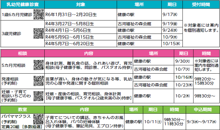 問合せ:子育て包括支援課(古河福祉の森会館)