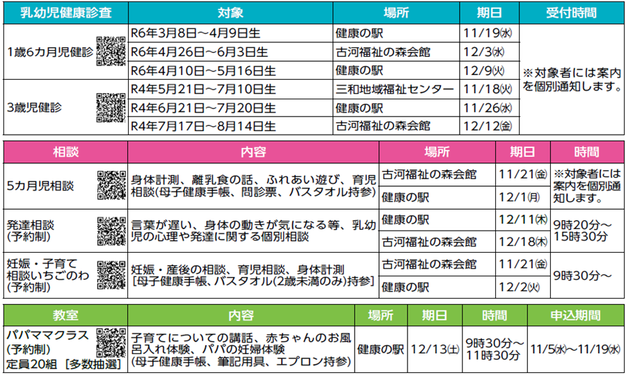 問合せ:子育て包括支援課(古河福祉の森会館)