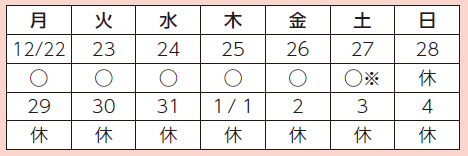 ※12月27日(土)は、「不燃ごみ」「粗大ごみ」のみ搬入可能で、受付時間は午後4時までとなります。可燃ごみは搬入できません。