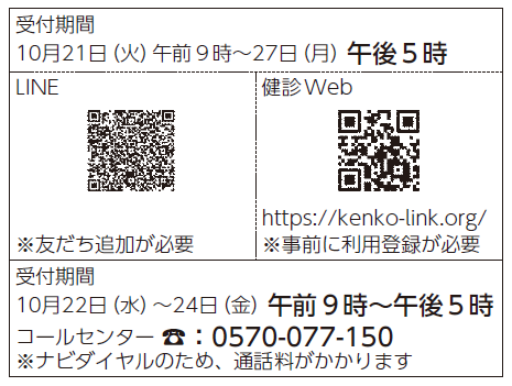 ※受付期間以降の予約や変更は、健康づくり課にお問い合わせください。