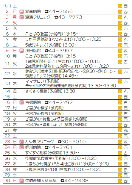 [在]…休日在宅当番医 午前9時30分〜午後4時