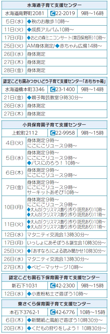 基本的に平日は自由開放日です。詳しくは、各子育て支援施設にお問い合わせください。