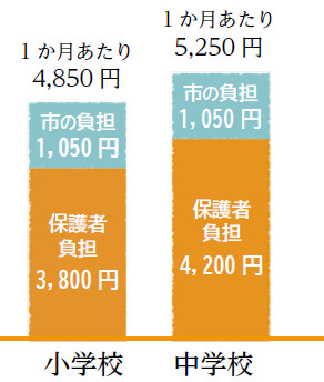 学校給食法により、光熱費や人件費など運営にかかる費用は市が負担し、食材料費は学校給食費として保護者の皆さんに負担していただいています。