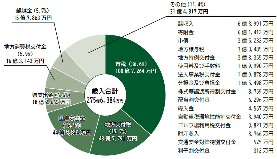 その他歳入では、企業の業績の伸びなどにより法人市民税は2億8,026万円の増加(34.6%増)、圏央道常総インターチェンジ周辺の企業進出などに伴い、固定資産税は3億6,113万円の増加(7.3%増)となりました。また、寄附金については、ふるさと納税の寄附者数の増加により1億3,766万円の増加(28.9%増)となりました。