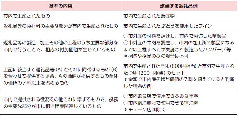 *返礼品候補となる製品とは…国が定める地場産品基準を満たすもの(主な例は下表のとおり)