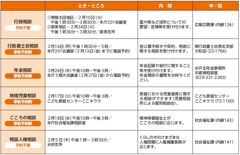 ・ハローワーク水戸(水戸市宮町)…第2・第4水曜日(祝日を除く)午後1時~4時