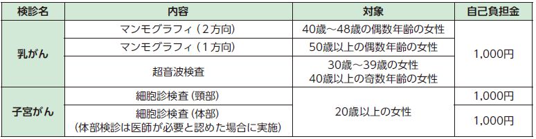 子宮頸がん検診無料クーポン券(対象:平成16年4月2日~平成17年4月1日生)および、乳がん検診無料クーポン券(対象…昭和59年4月2日~昭和60年4月1日生)をお持ちの方は、医療機関検診を受けることができます。